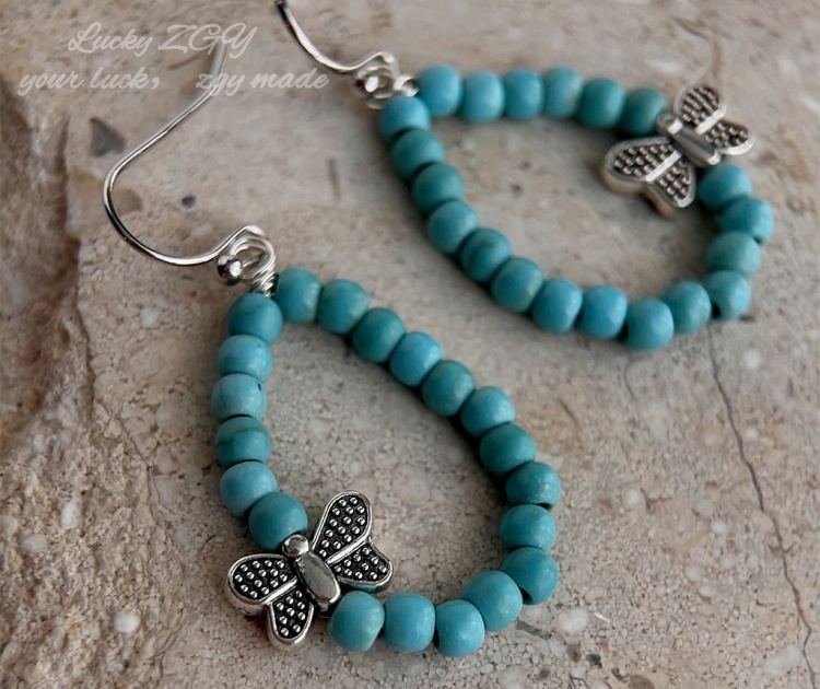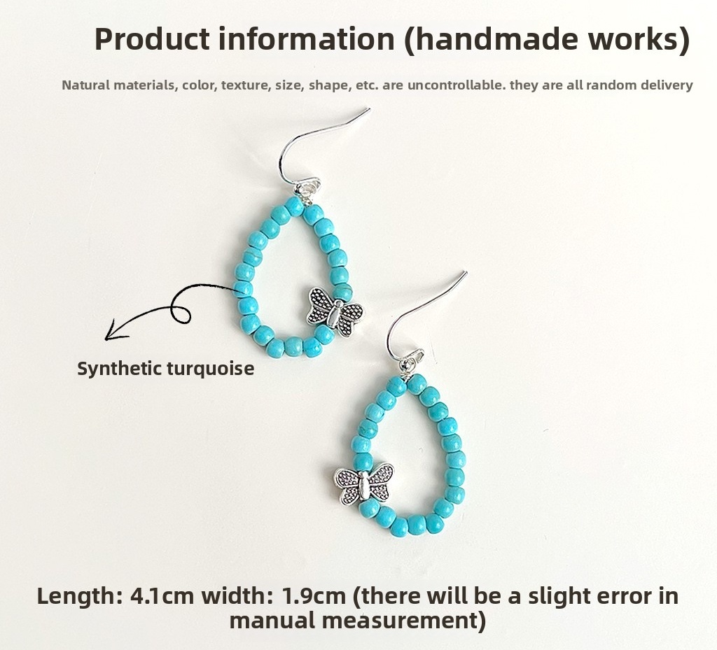 LUCKYZGY Natural stone butterfly earrings vintage literary earrings