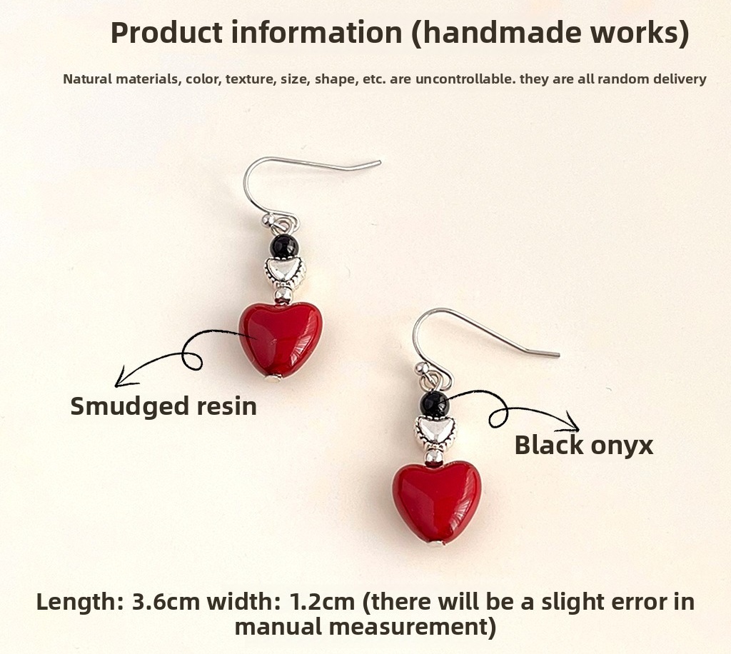 Natural stone,Black Agate, smudge resin, love earrings