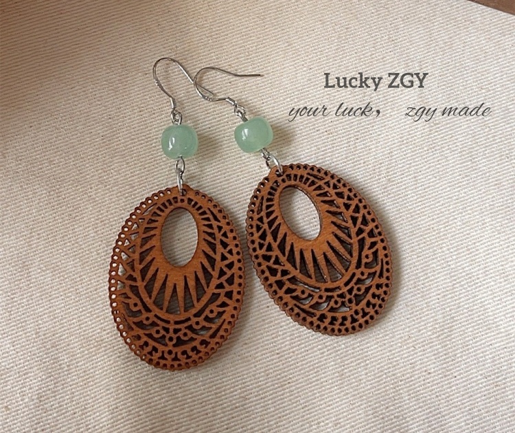Natural wood eastern jade wooden handmade design sense ancient style earrings