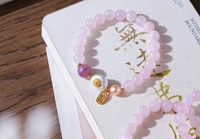 Pink quartz is a highly aesthetic jewelry, also known as rose crystal, which means beautiful love. Since ancient times, it is a symbol of happy love, wearing it on the body can increase the peach blossom luck, at the same time it can also imply the rolling of wealth, can help improve interpersonal relationships, enhance popularity, business relationship, in addition to strengthening their own vitality and self-confidence, so that it looks more confident.